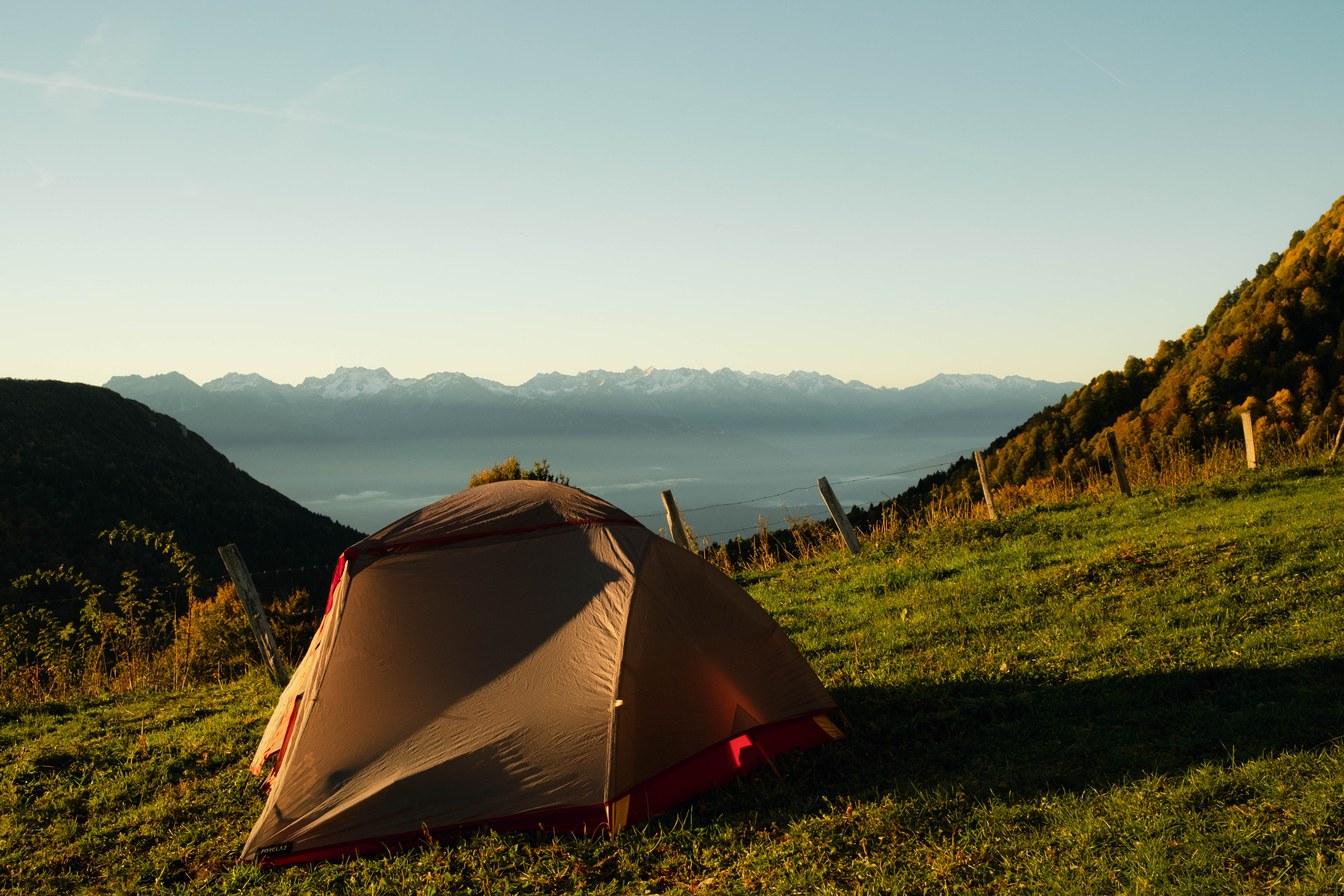 Le coucher de soleil sur le Mont Blanc ça en vaut la peine. Orange, rose, bleuté.